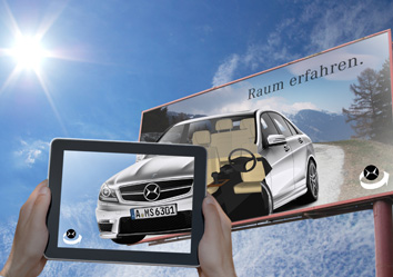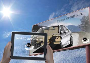 Der optische Effekt ist überwältigend: flächige Darstellungen wachsen vor Ihren Augen ins Körperhafte, Objekte erstehen quasi aus dem Nichts. Das ist mehr als eine faszinierende Spielerei: Sie können beispielsweise virtuell ein Fahrzeug von allen Seiten präsentieren, Inneneinrichtungelemente erstehen lassen und so ein Gefühl für die Wohnsituation heraufbeschwören, Geschichte und Zukunft einer Straßenzeile zum Leben erwecken. Auch animierte Darstellungen sind möglich.